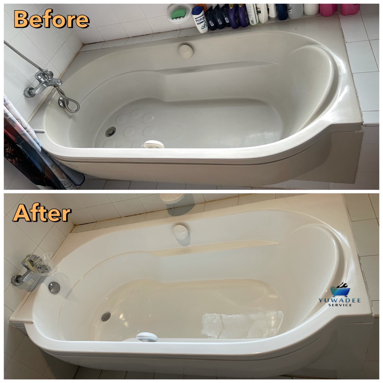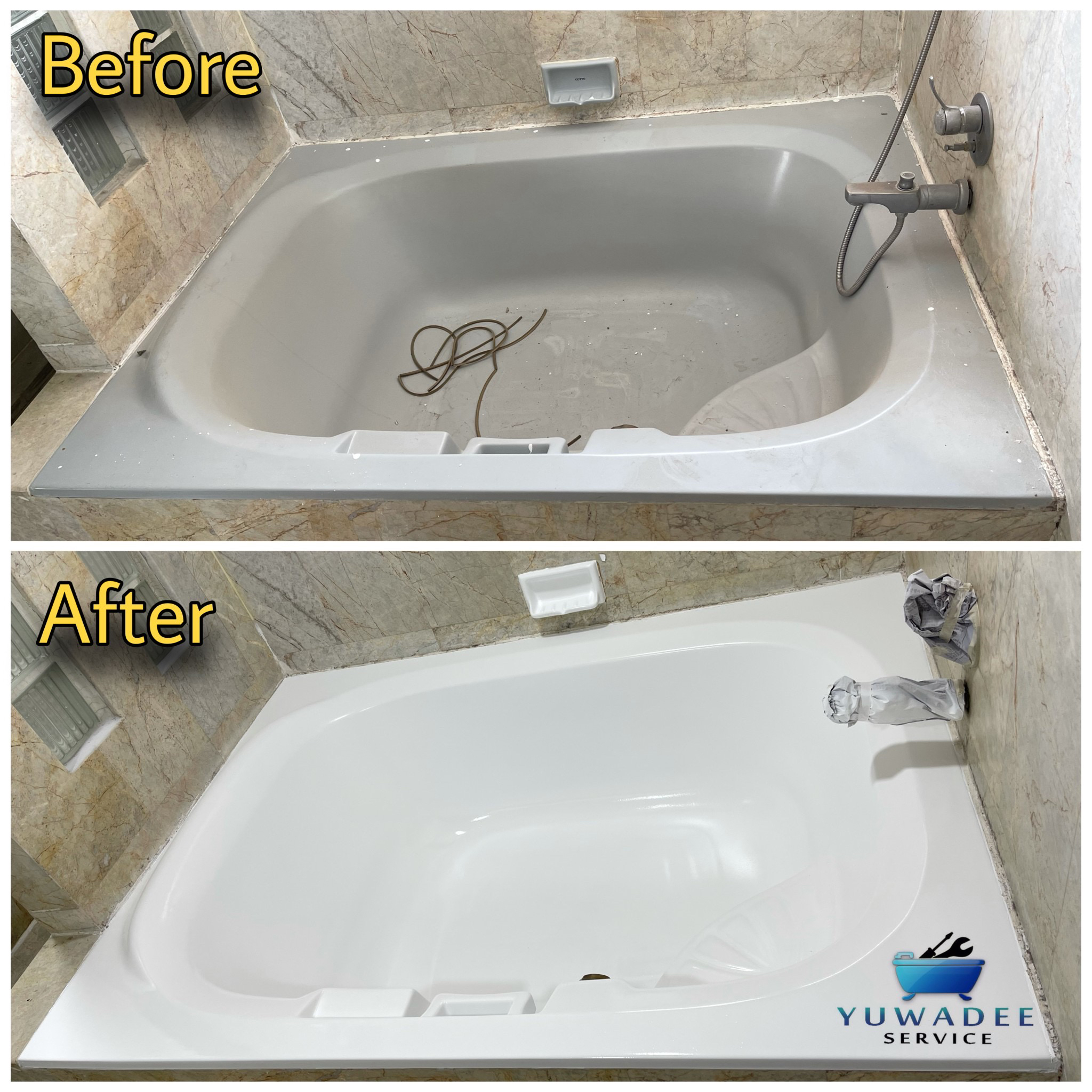 ยุวดีเซอร์วิส บริการรับเหมา ( รับซ่อมทั่วประเทศ ) ไม่ว่า อ่างอาบน้ำ ของท่าน มีปัญหาเกิดจากสาเหตุอะไร เราสามารถซ่อมได้ทั้งหมด โดยไม่ต้องรื้อถอน ยกตัวอย่างเช่น อ่างอาบน้ำเป็น,คราบสนิม,กระเทาะ,เก่าผุ,รอยแตก,คราบเหลืองจากสารเคมี,เป็นรอยขนแมว,ลบรอยขูดขีด ,เปลี่ยนสีอ่าง,ทำสีอ่างใหม่ ฯลฯ ไม่ว่าจะเป็น อ่างเหล็ก,ไฟเบอร์กล๊าส,จากุซซี่ เคลือบสีใหม่ได้ทุกชนิด ทุกเฉดสีที่คุณต้องการ เรารับซ่อมโดยไม่ต้องรื้อถอน ประหยัด ใช้เวลา 48 ชั่วโมง ใช้งานได้ตามปรกติ